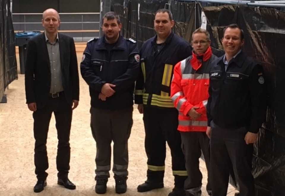 Die Sporthalle „In der Wünne“ in Drolshagen ist bezugsfertig. Alle Beteiligten hätten die Vorbereitungen für die Umwandlung der Halle in einer Notunterkunft für bis zu 200 Flüchtlinge, „innerhalb kürzester Zeit mit Bravour“ gemeistert, erklärt Bürgermeister Uli Berghof via Pressemitteilung. Das Schreiben im Wortlaut: