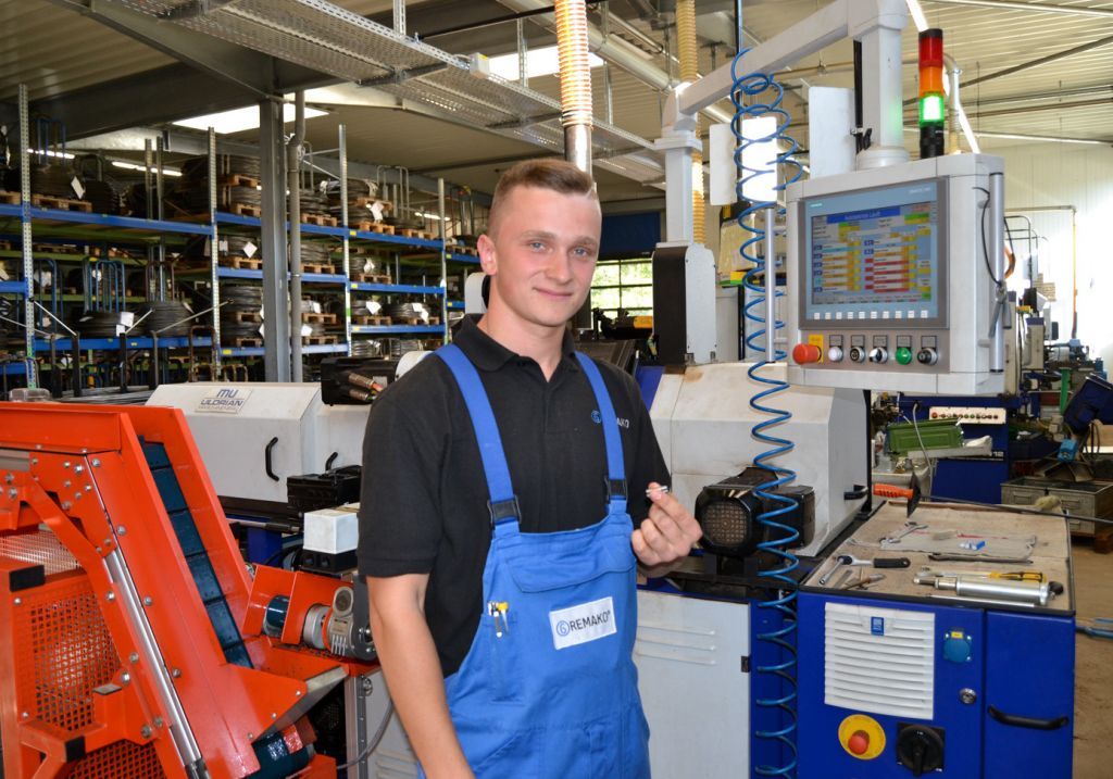 „Den besten haben wir hier“ meint er und zeigt auf Daniel Steinhoff, Azubi – oder früher „Stift“ – im 3. Lehrjahr als Zerspanungsmechaniker. Was das heißt, will ich von ihm selber wissen. Und Daniel legt los: „Zerspanungsmechaniker fertigen Präzisionsbauteile. Dabei werden verschiedene Verfahren wie Drehen, Fräsen, Schleifen oder Bohren eingesetzt.“